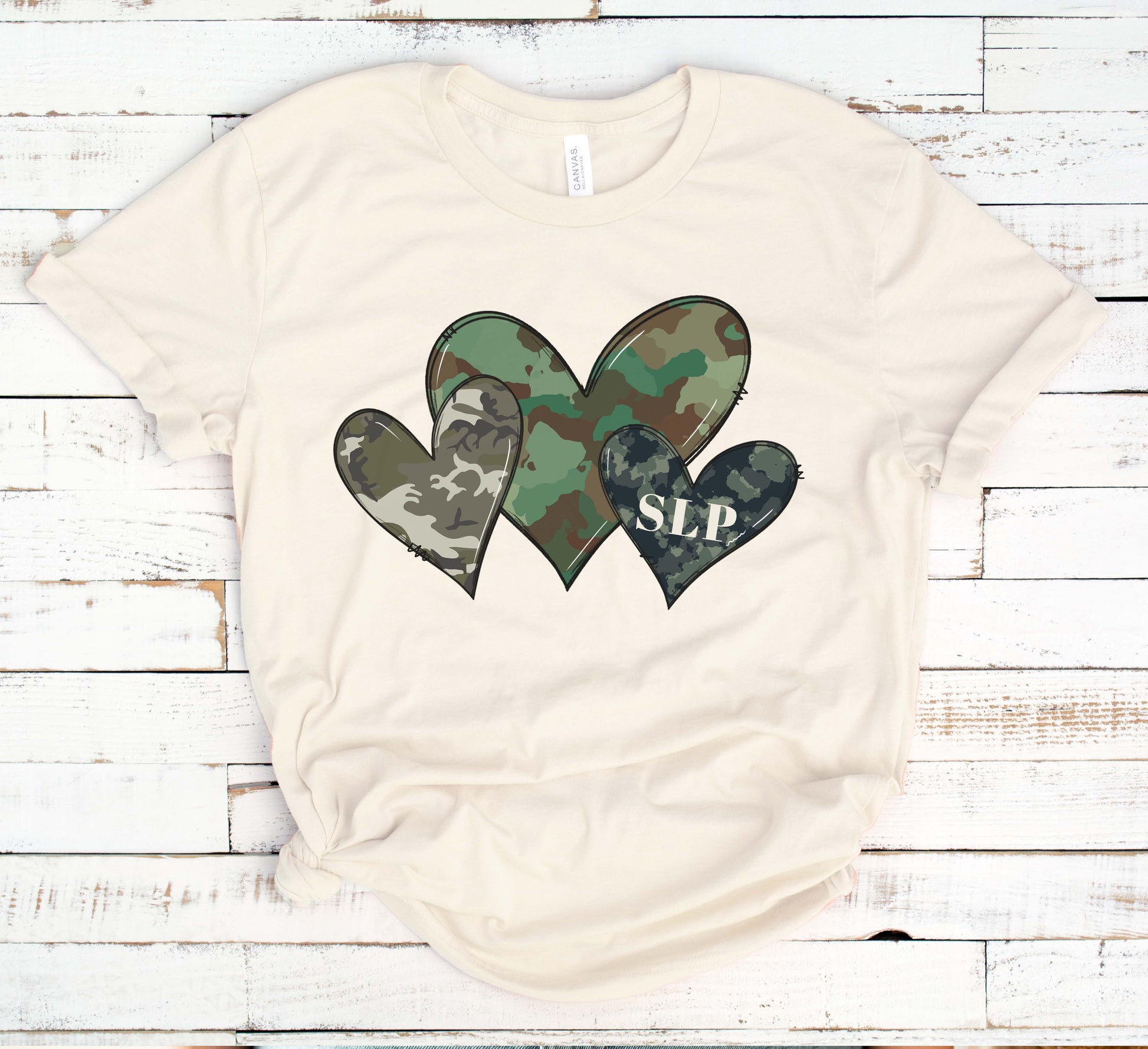 Camo hear t-shirt